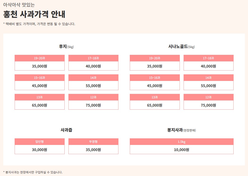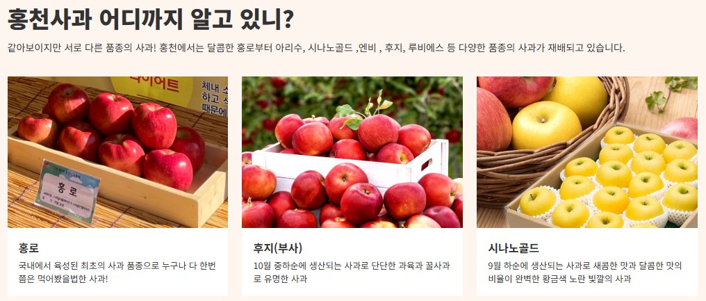 → 현장에서 갓 수확한 신선한 홍천사과를 직접 맛보고 구매할 수 있어요.