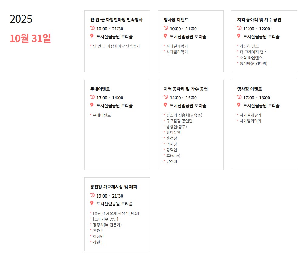- 홍천강 가요제: 10월 31일(금) 19:00~21:30