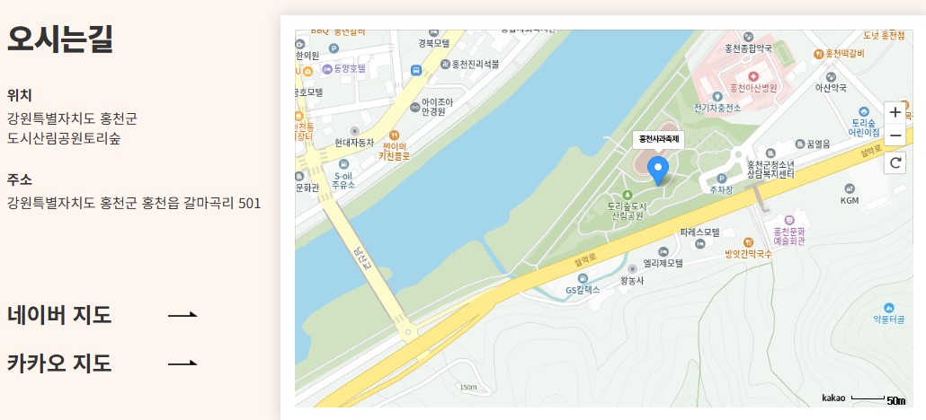 네비게이션에 ‘홍천 토리숲’ 또는 ‘도시산림공원’ 입력