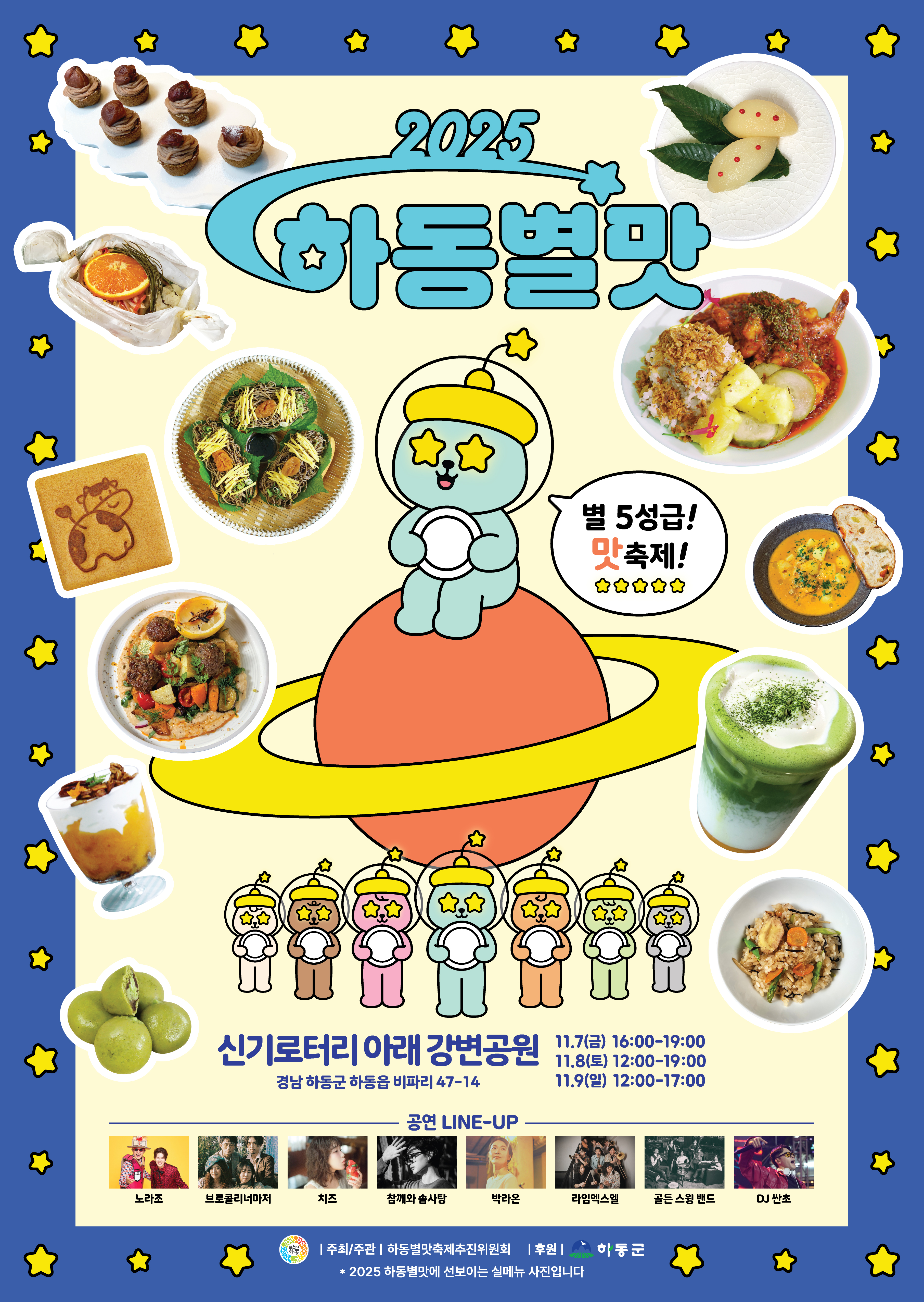 특히 지난해 첫선을 보인 ‘하동별맛축제’가 큰 호응을 얻은 만큼, 올해는 더 풍성한 프로그램과 다채로운 먹거리로 돌아온다. ‘별 5성급 맛축제’라는 이름에 걸맞게 100가지 별미와 5성급 음식 체험, 공연, 플리마켓, 이벤트가 함께 진행된다.