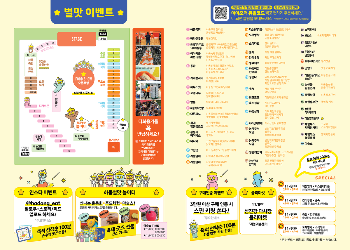 공식 인스타그램 @hadong_eat 계정을 팔로우하고 축제 현장 사진을 업로드하면, 선착순 100명에게 기념 굿즈가 증정된다.