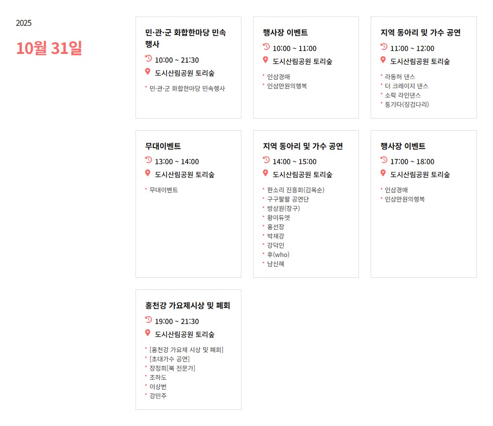 - 홍천강 가요제 (10.31, 19:00~21:00)