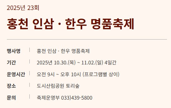 - 행사명 : 2025 홍천 인삼·한우 명품축제