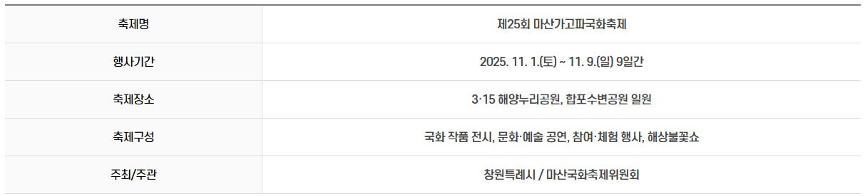 매년 수십만 명이 찾는 이 축제는 국화 도시 창원 마산의 대표 가을축제로 자리 잡았어요.