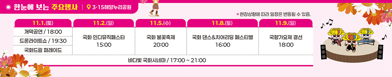 - 국화전시존: 대형 조형물, 캐릭터 국화탑, 분재 전시