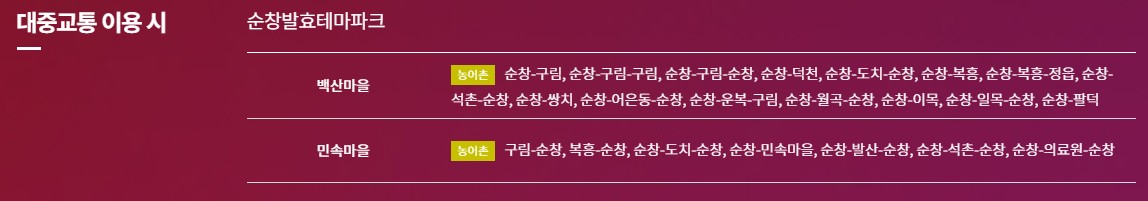 - 순창공용터미널 하차 → 순창발효테마파크행 군내버스 이용