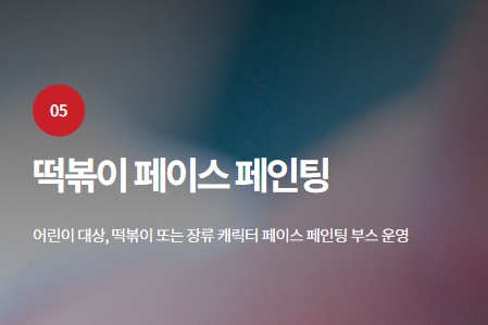 - 놀이·체험 콘텐츠 : 떡볶이 스탑워치 게임, 페이스페인팅, 포토존, 플리마켓