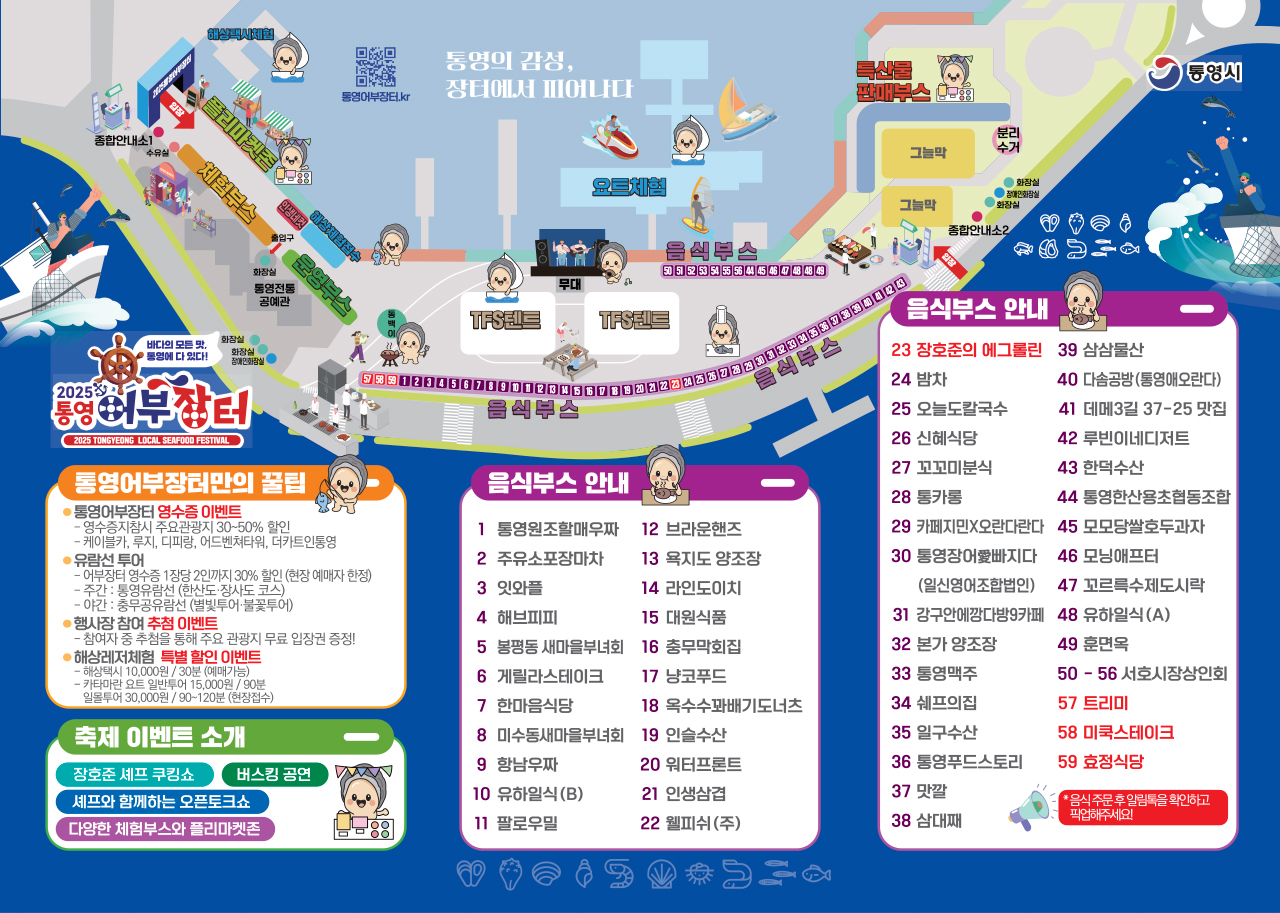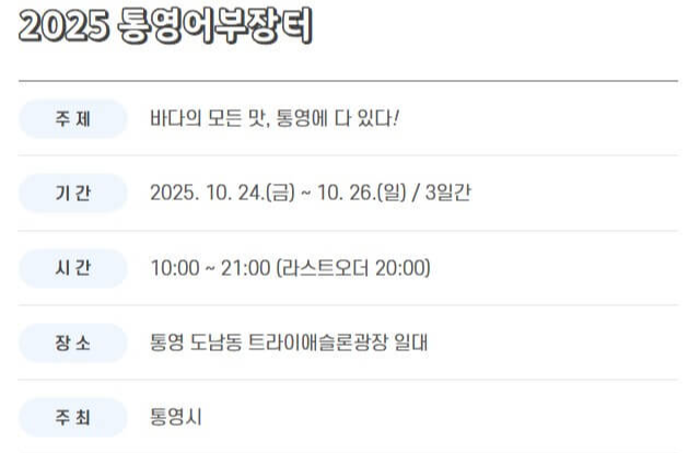 경남 통영을 대표하는 수산물 축제, ‘2025 통영어부장터축제’가 올해도 트라이애슬론광장에서 열려요.