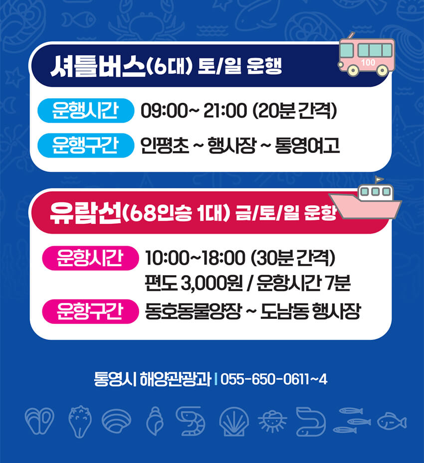 - 운행시간 확인 필수: 셔틀버스는 09:00~21:00, 유람선은 10:00~18:00까지만 운항합니다.